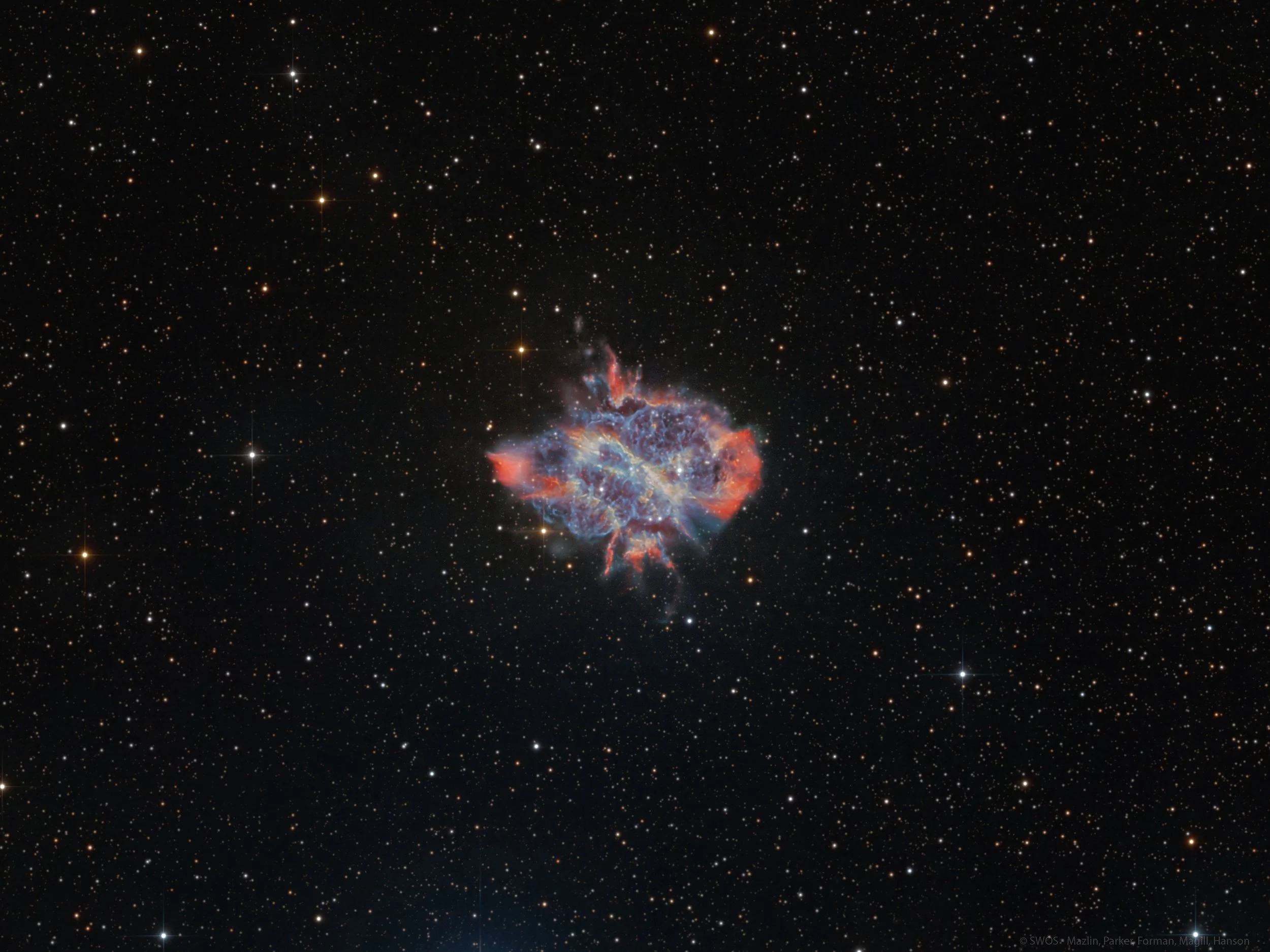 Imaged in RGBHa on a Planewave CDK 24 at Observatorio El Sauce, Chile. Taken Moravian C5.