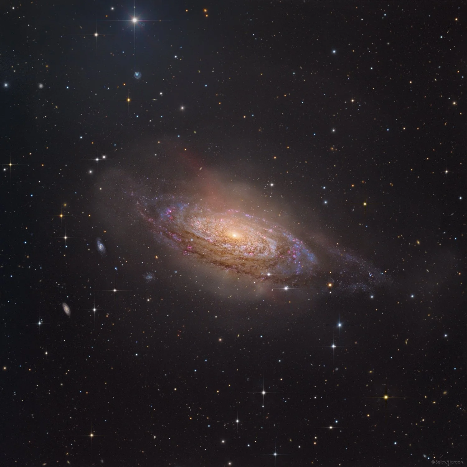 A flocculent intermediate spiral galaxy, NGC 3521 lacks the clearly defined arm structure that we see in some other spirals. Surrounded by dust, the galaxy has numerous star-forming areas and a luminous center. The dust bubbles are likely from encounters and mergers long ago with satellite galaxies.